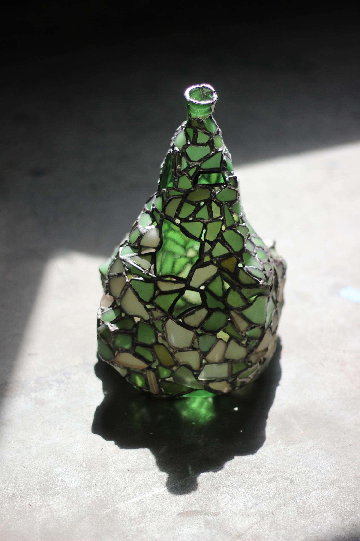 preparatory study, pick up colors, sculpturen 2021, pieces of frostred glass, copper, tin, gold leaf